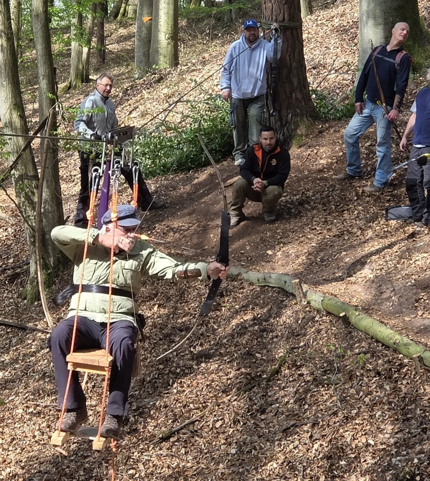Mit seinem Langbogen zeigt Jürgen eine beeindruckende Leistung.